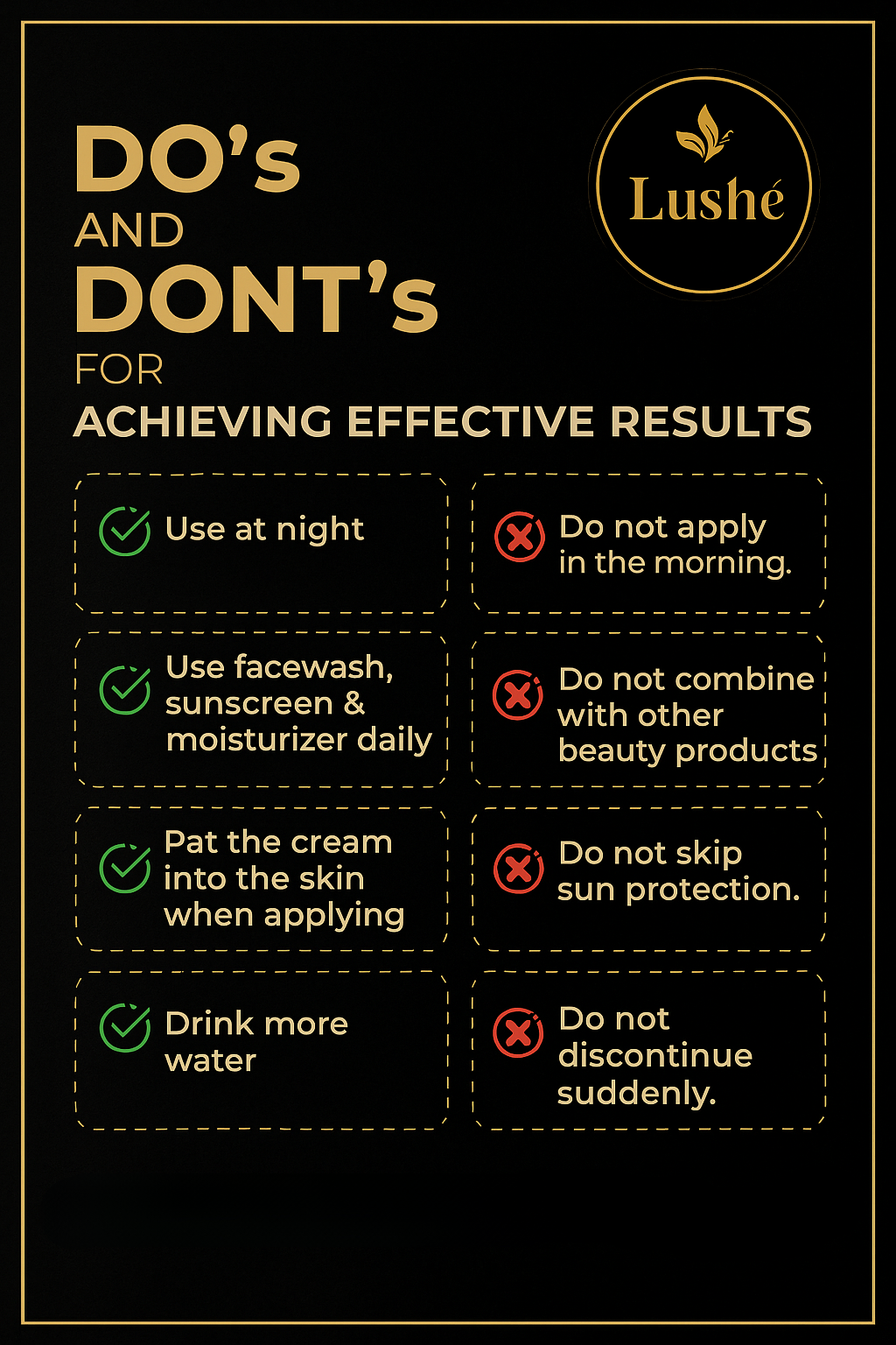 ▪️Formulated with premium Korean ingredients and cutting-edge skincare science, Lushé transforms dull, uneven skin while you sleep — and we’re so confident in its power, you will see visible results in days guaranteed*