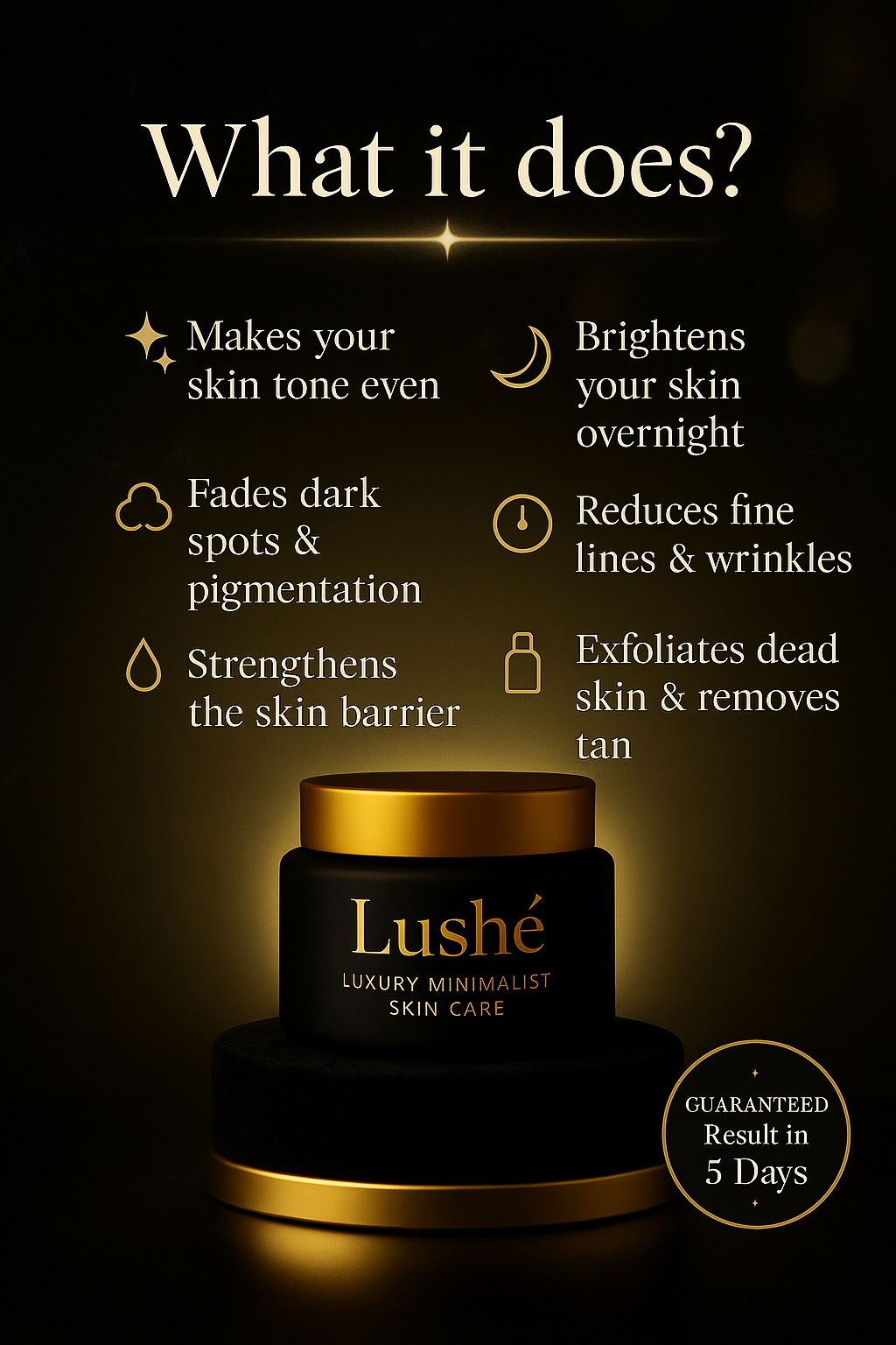 ▪️Lushé is not just a night cream — it’s your fast-track to visibly radiant Even-Toned, Glass-like Skin in just 5 days — Guaranteed.